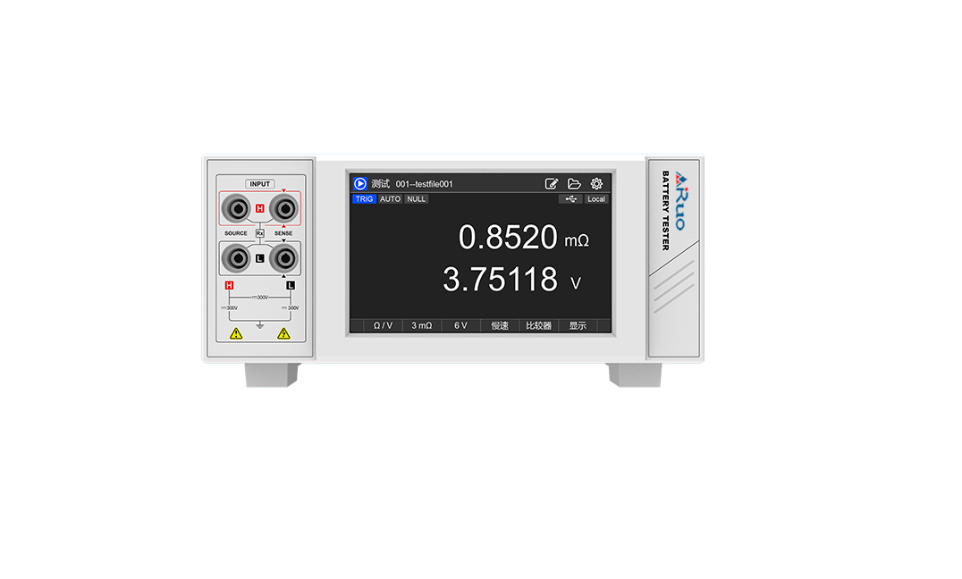 ■ ARBTS7510电池测试仪, 提供6V/60V/100V/300V/1000V多档开路电压,3mΩ/30mΩ/300mΩ/3Ω/30Ω/300Ω/3kΩ多档交流内阻测试。测试仪适用于800V高压动力电池、储能电池的交流内阻和开路电压测试。
