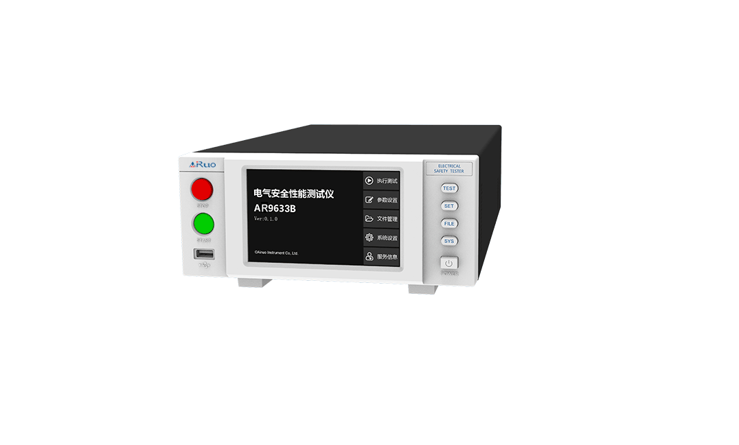 ■  爱若AR963xB系列电气安全性能测试仪,具备交流耐压、直流耐压、绝缘电阻、交流接地多种功能组合,以及电弧侦测、开短路侦测、低通滤波等辅助功能,具备RS232RS485LANUSBPLC多种通信控制接口,可满足各类电子电气产品的安规测试需求。
