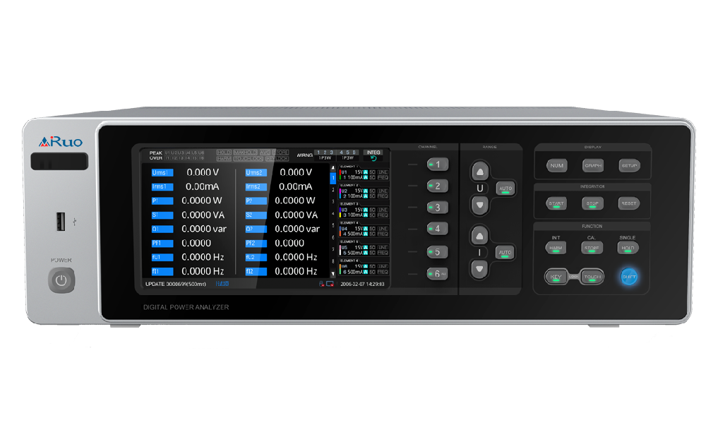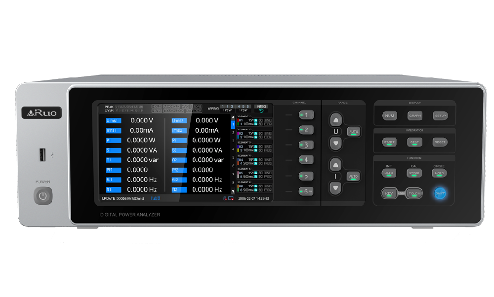 ■ 六通道同步功率分析,基本精度 ±0.1%