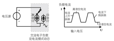 ● 动态负载的操作是周期性的在两个负载准位间切换,如图所示。AN29系列交流电子负载在动态时电流上升、下降斜率独立可调。