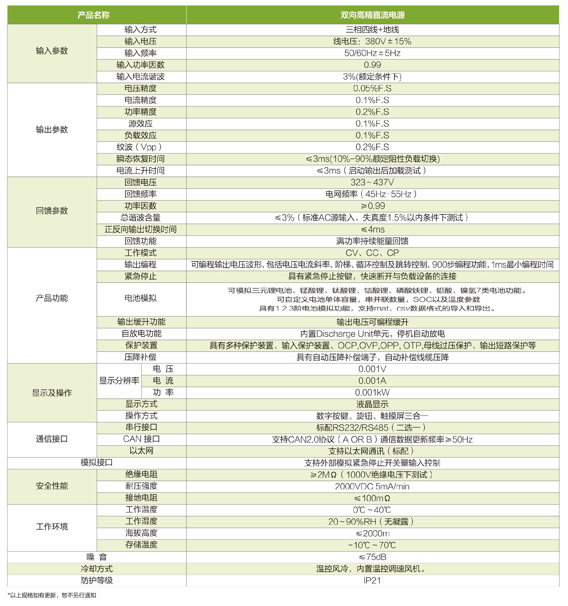■ 自适应电网回馈功能, 满功率持续能量回馈;