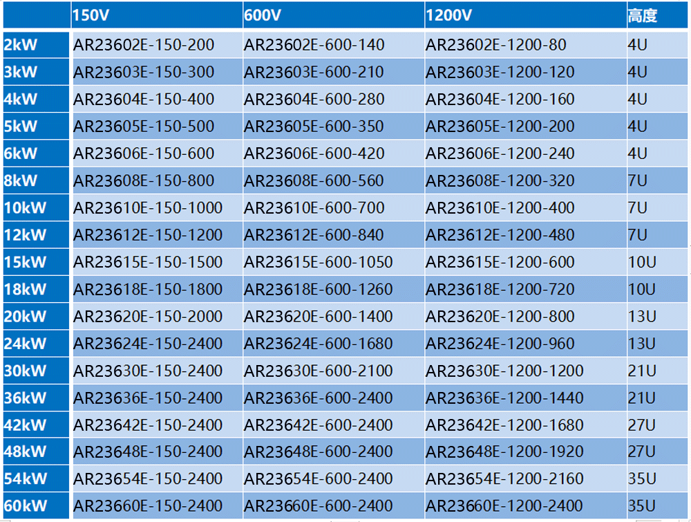 ■ 高功率密度,6kW高度4U,24kW高度13U;体积小,重量轻,操作便捷;