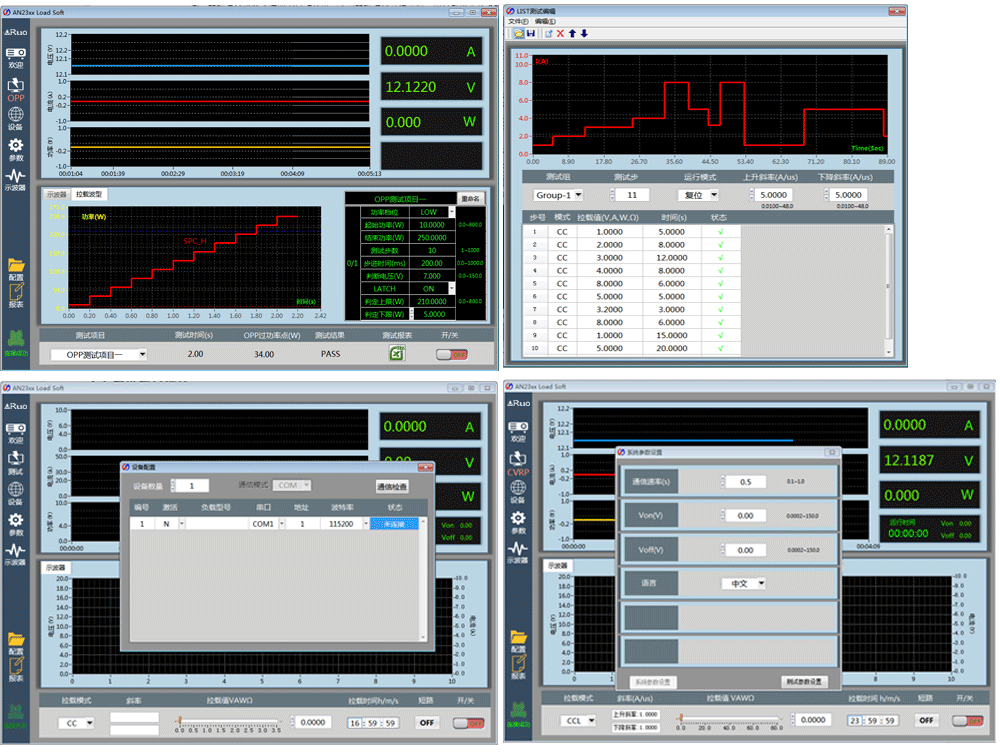 ■ 用户可以使用上位机软件程控负载进行测试。序列测试(List)通过负载界面设置会比较繁琐但使用上位机软件的图形界面快速设置,并配合波形绘制将会给测试人员带来极大方便。